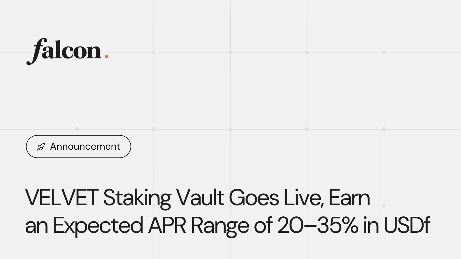 Stake VELVET in Falcon’s new BNB Chain vault to earn 20–35% APR paid in USDf. Long term holders keep upside exposure while generating stable yield.